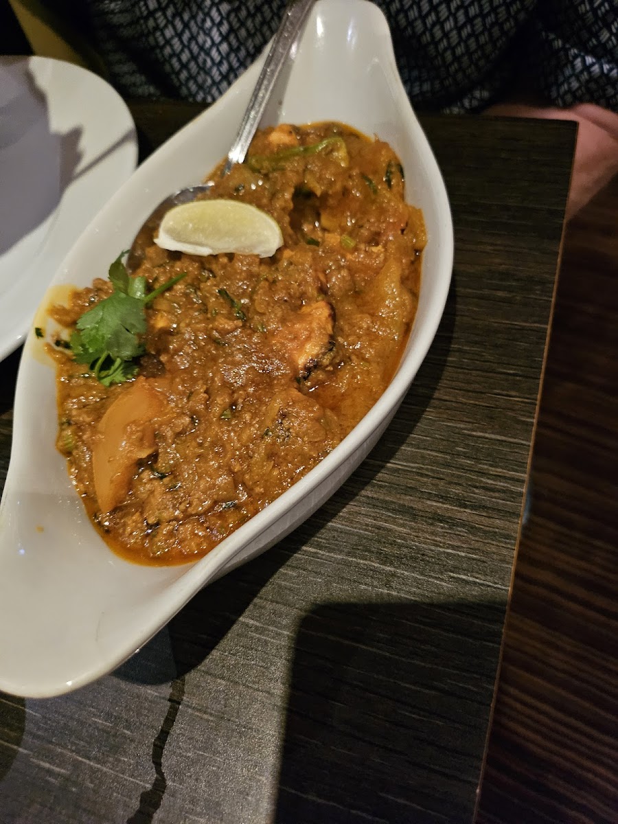Went here as a walk in not pre booked but there was lots of space and we were seated straight away. Good selection of curry’s and a really helpful waiter who was able to suggest suitable options. I had a lamb dish which was lovely and flavoursome although a bit more heat would have been even better. Good service, good pickle tray too and not skimped on. Good value at less than £20 a head for a drink, main, rice and naan and poppadoms.